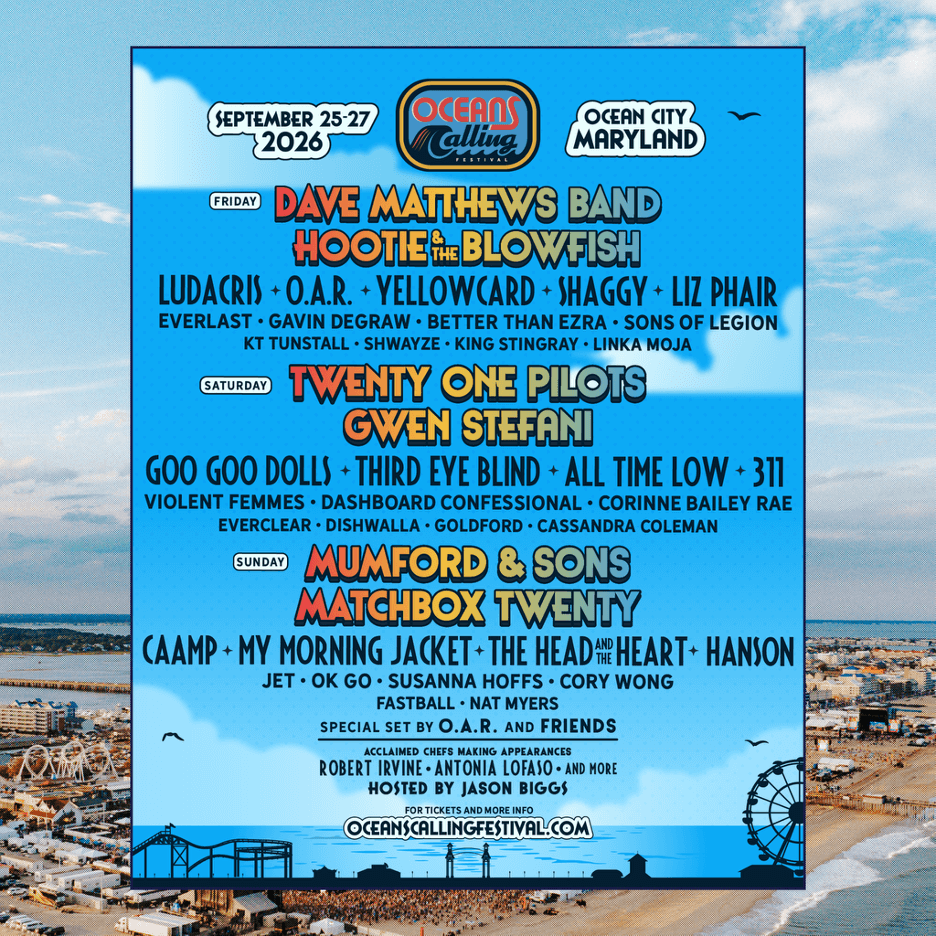 O festival mais aguardado da costa leste dos Estados Unidos acaba de revelar o seu lineup estelar para o próximo ano. O Oceans Calling 2026 anunciou oficialmente que Dave Matthews Band, Twenty One Pilots e Mumford & Sons serão os grandes headliners da edição que acontece entre os dias 25 e 27 de setembro.
